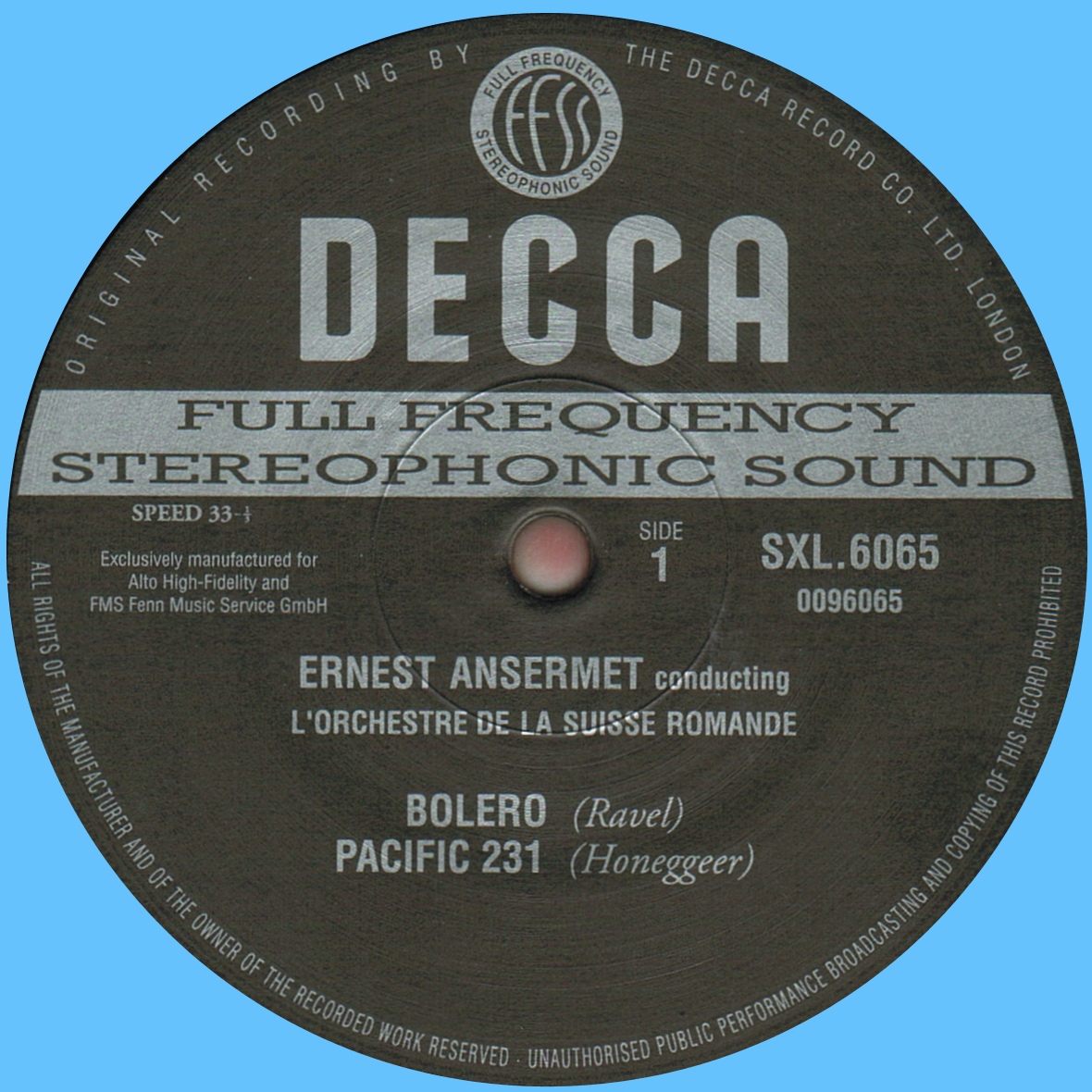 L'enregistrement d'avril 1963 est donc le seul qui soit paru en stéréo. Pendant les sessions d'enregistrement des 2 au 10 avril furent enregistrées plusieurs oeuvres: de Ravel le Bolero et La Valse, de Paul Dukas L’Apprenti sorcier, d'Arthur Honegger Pacific 231 et le Mouvement symphonique No. 1 et de Strawinski Mavra et Le Baiser de la Fée. Les oeuvres de Ravel, Dukas et Honegger furent publiées ensemble, sur les disques Decca LXT 6065 resp. SXL 6065 en décembre 1963, puis sur Decca London CM 9367 resp. CS 6367 en décembre 1964.