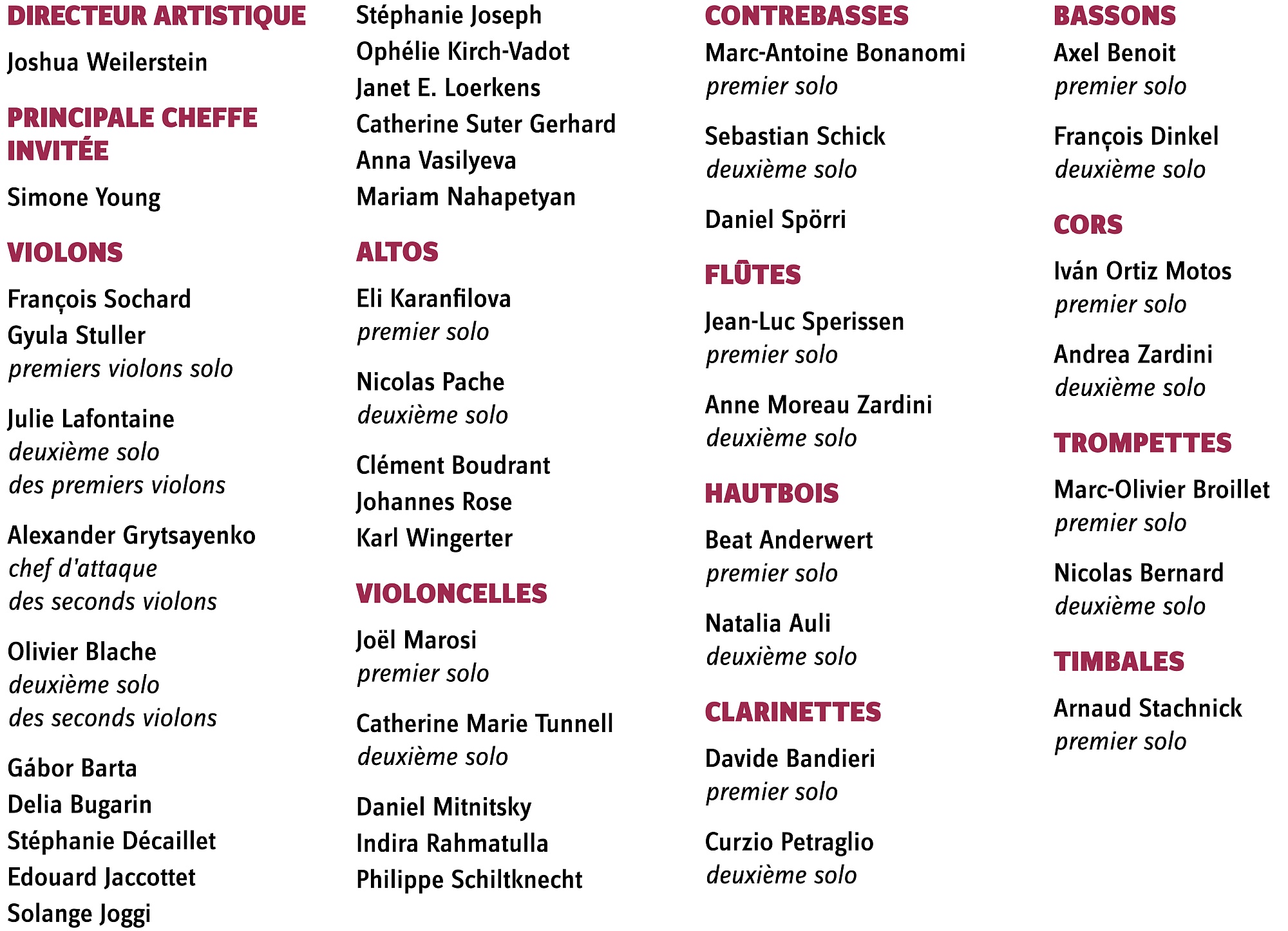 Concert des 10/11 septembre 2018, composition de l'orchestre