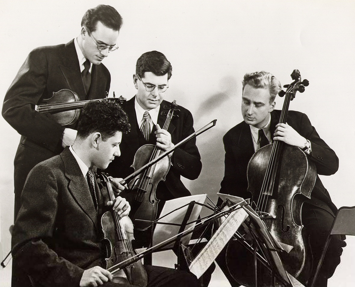 Le «Juilliard String Quartet» vers 1952 dans sa formation d'origine: Robert Mann et Robert Koff, violons, Raphael Hillyer, alto et Arthur Winograd, violoncelle Une photo de G. D. Hackett